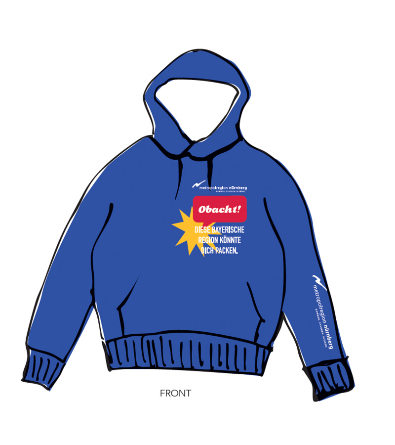 Für die Kommunikationskampagne „Beware/Obacht“ haben wir einen hochwertigen, fair produzierten Hoodie im Corporate Design entwickelt – als repräsentatives Geschenk für einen Staatsempfang in München. Die Hoodies wurden u. a. an bayerische Ministerinnen und Minister sowie den Ministerpräsidenten überreicht.